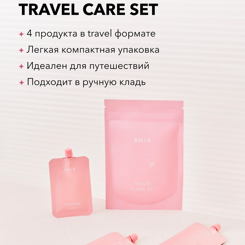 Набор уходовой косметики в travel-формате: гель для умывания, крем для лица, тонер и эмульсия SHIK TRAVEL CARE SET интересное: