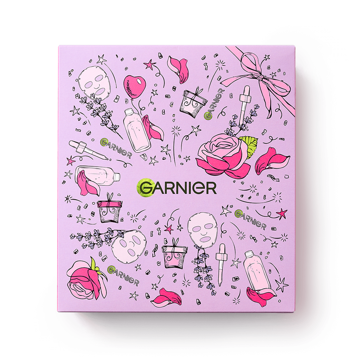 Набор Garnier Тоник Основной уход Розовая вода, 200 мл + Тканевая маска для лица «Увлажнение + Антистресс» с гиалуроновой кислотой и маслом лаванды против следов усталости для увлажнения, питания и восстановления сияния кожи, 32 мл.