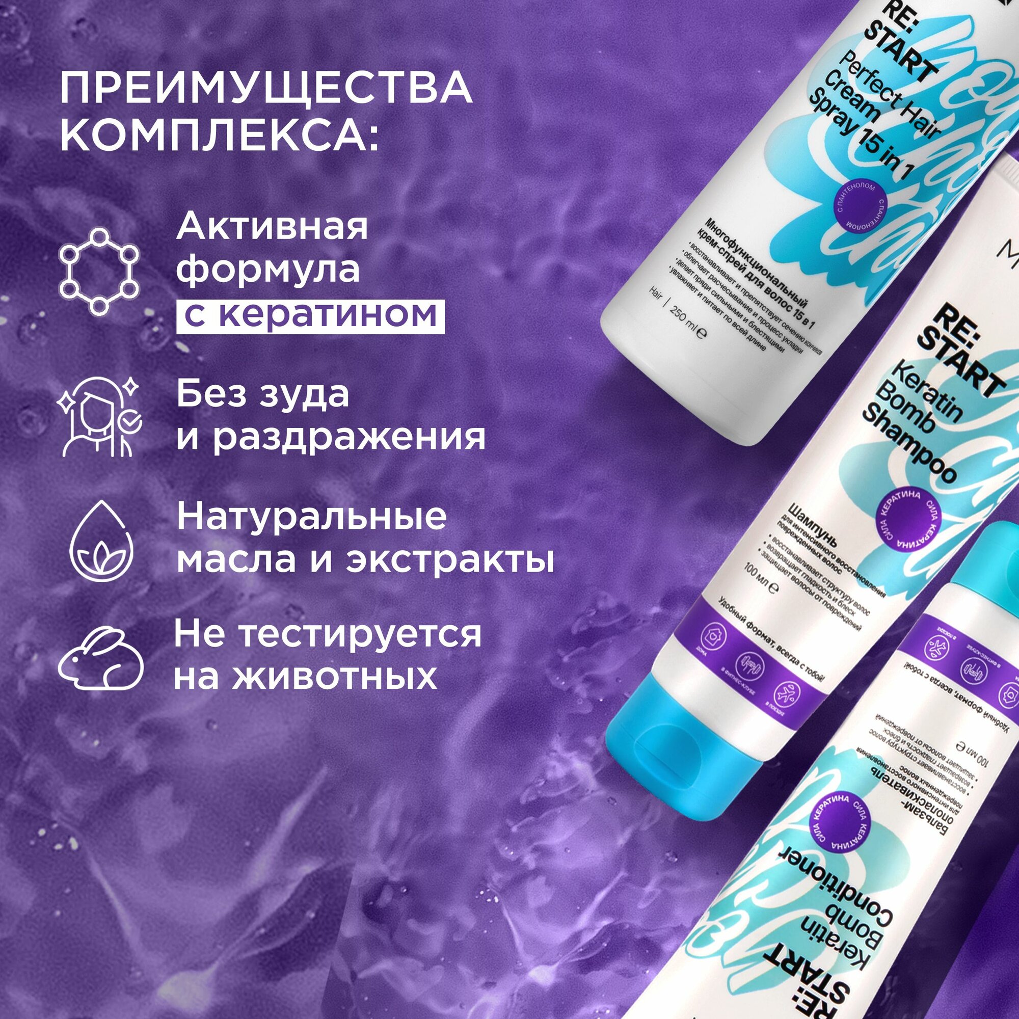 MIXIT Подарочный набор косметики для волос шампунь бальзам и спрей термозащита. Профессиональный восстанавливающий и увлажняющий уход Restart интересное: