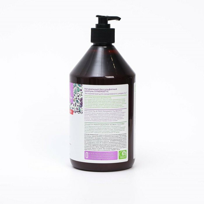 Шампунь и бальзам бессульфатный SYNERGETIC экстрамягкий для ежедневного ухода, 750 мл Synergetic 777 .