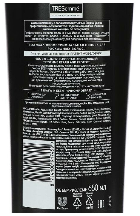 Купить Шампунь Tresemme Восстанавливающий Repair And Protect 650мл