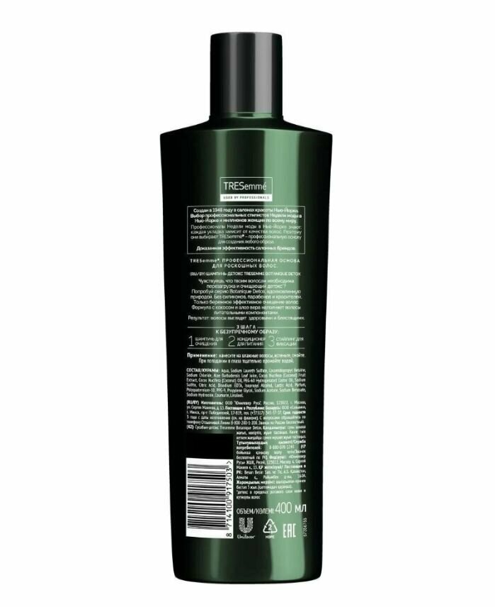 Купить Набор из 3 штук Шампунь TRESemme для волос без силиконов Botanique Detox 400мл
