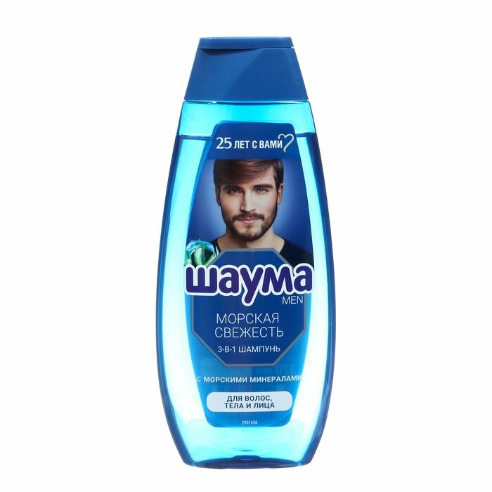 Шаума Men Шампунь Морская свежесть 3 в 1 для волос, тела и лица, 370 мл