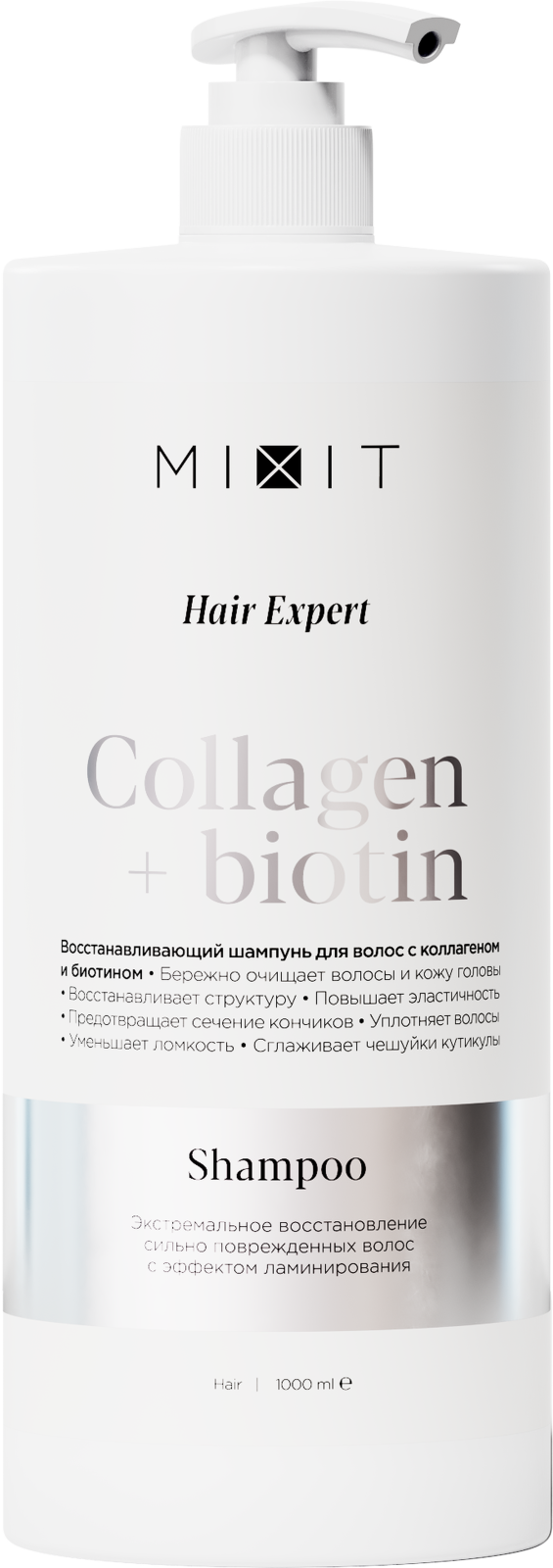 Шампунь для волос MIXIT Hair Expert увлажняющий и восстанавливающий с коллагеном, 1000 мл