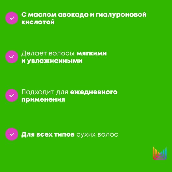 | Эффект | восстановление / глубокая очистка / защита от негативного воздействия окружающей среды / облегчение расчесывания / очищение / питание / придание блеска / придание мягкости / придание объема / придание эластичности / против секущихся кончиков / разглаживание / себорегуляция / увлажнение / укрепление |
