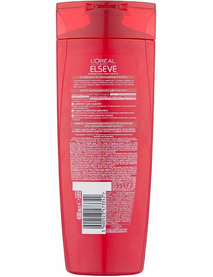 L'Oreal Paris шампунь-уход Elseve Эксперт Цвета Ламинирующий, 400 мл