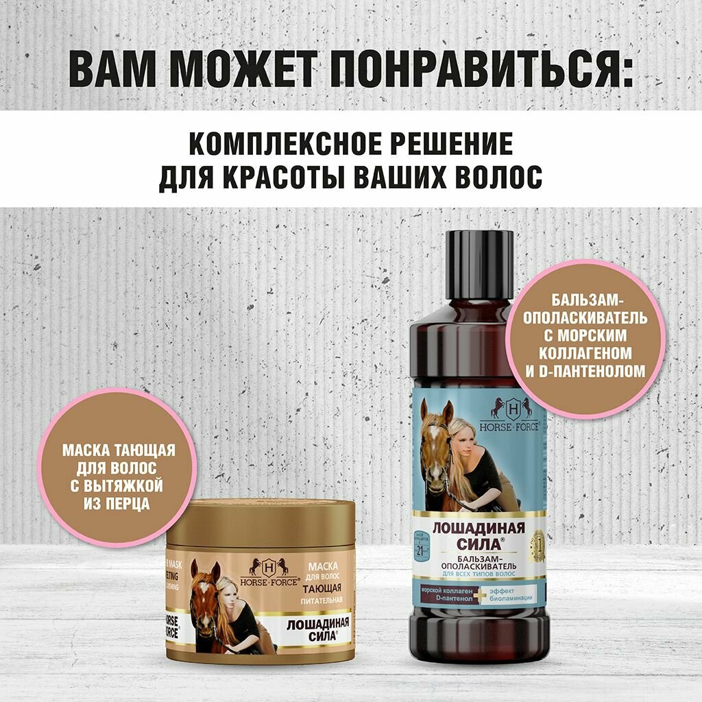 Шампунь для волос женский с Коллагеном и Ланолином Лошадиная Сила профессиональный против выпадения для роста 500 мл