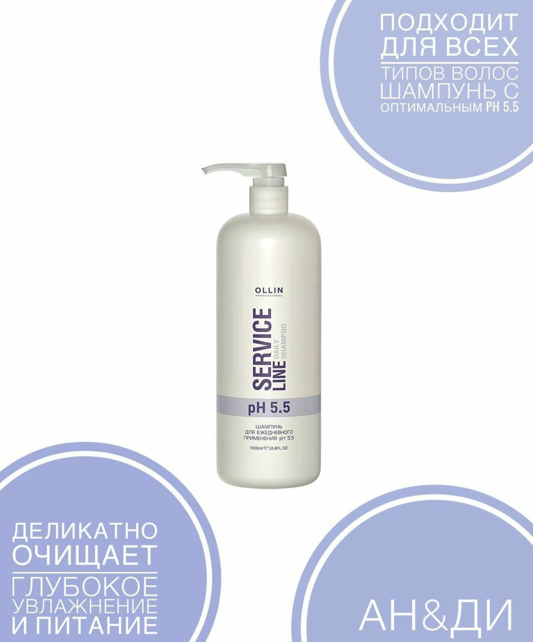 Шампунь для волос ежедневного применения рН 5,5 Service Line Ollin Professional 1000 мл