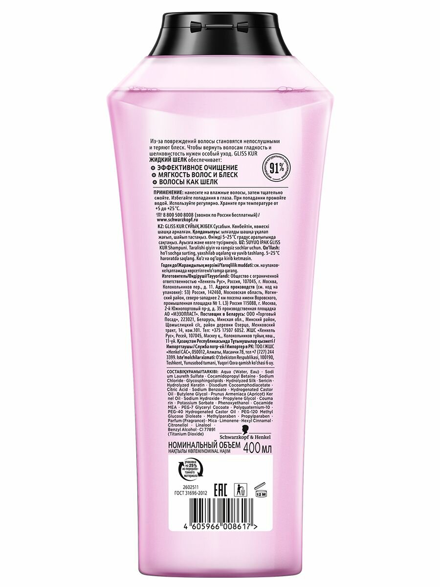 Глисс Кур Шампунь для волос Жидкий шелк, 400 мл - 1 шт