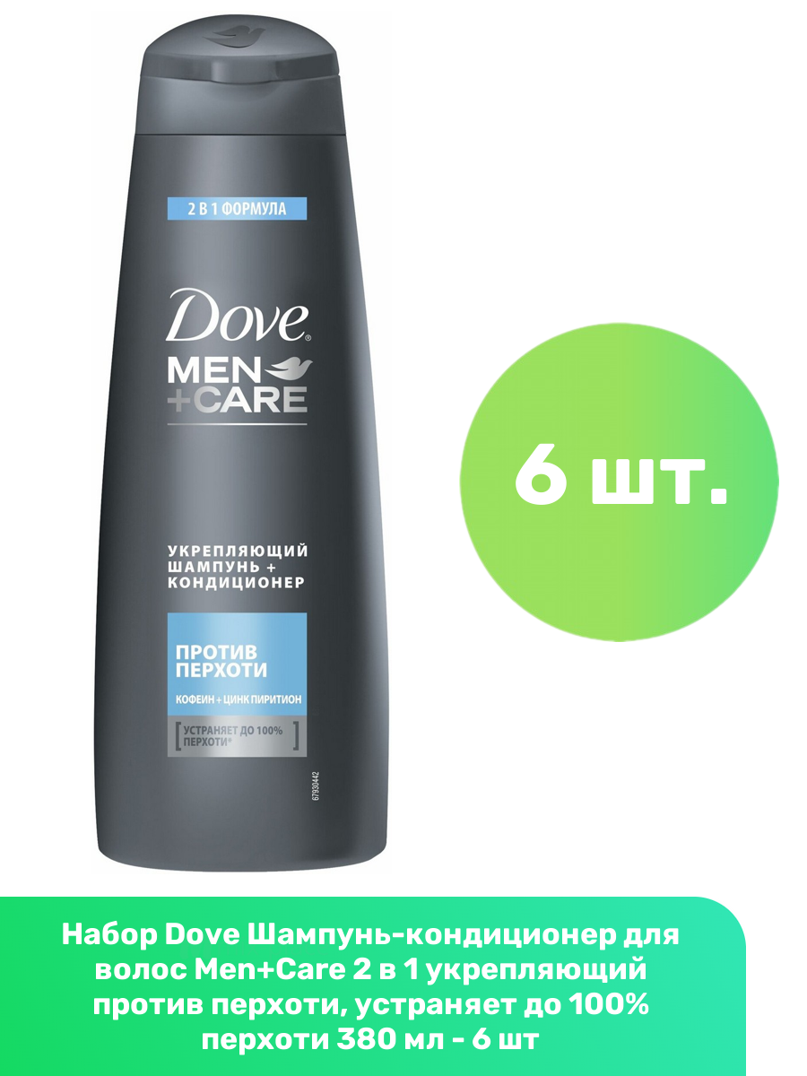 Купить Dove Шампунь-кондиционер для волос Men+Care 2 в 1 укрепляющий против перхоти, устраняет до 100% перхоти 380 мл - 6 шт