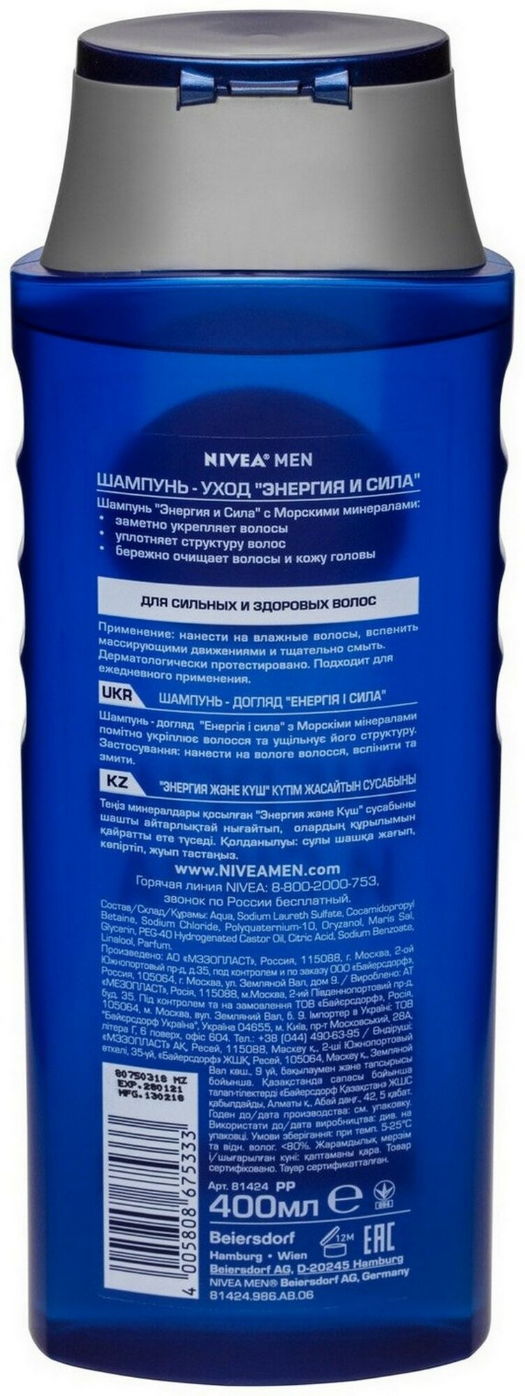 Nivea шампунь Men Энергия и сила с морскими минералами, 400 мл