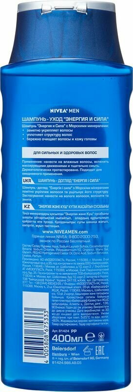 Nivea шампунь Men Энергия и сила с морскими минералами, 400 мл