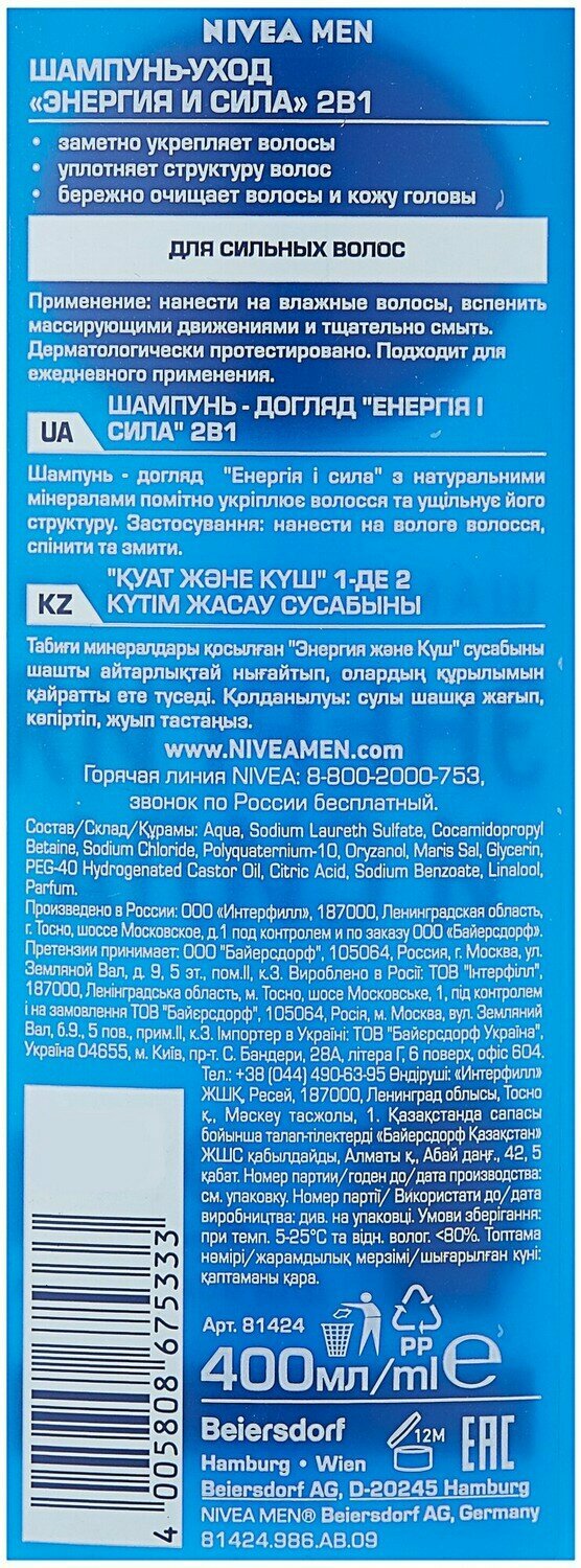 Шампунь для волос Nivea Энергия и Сила мужской, 400 мл