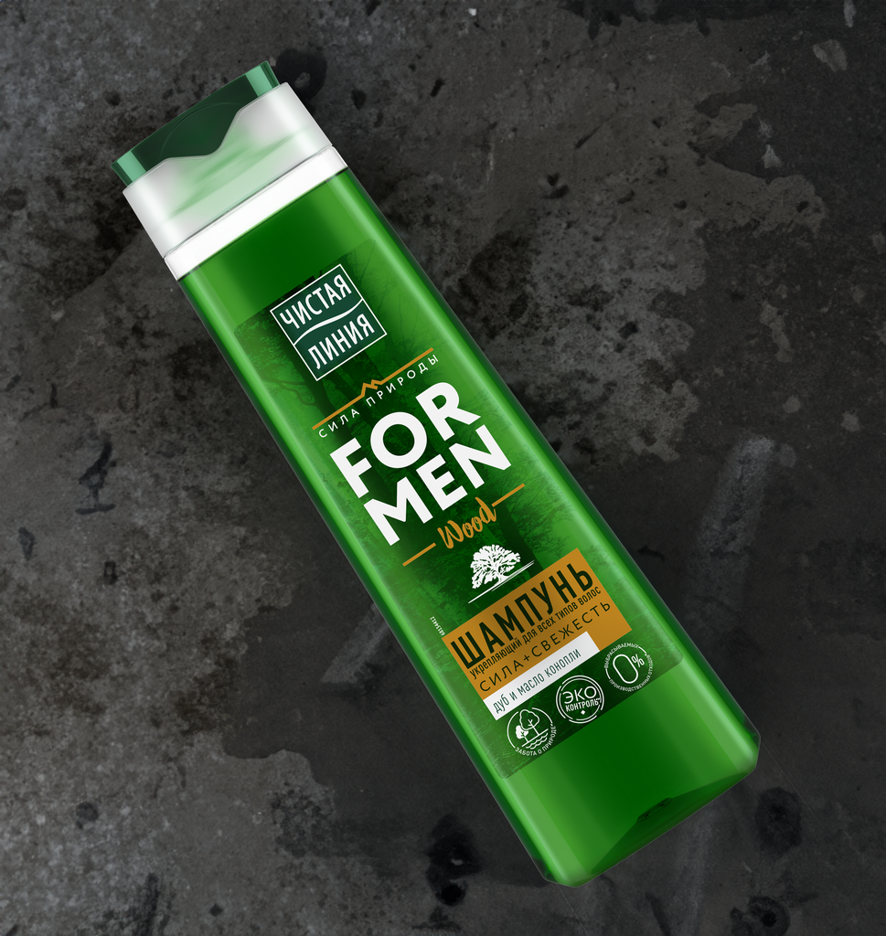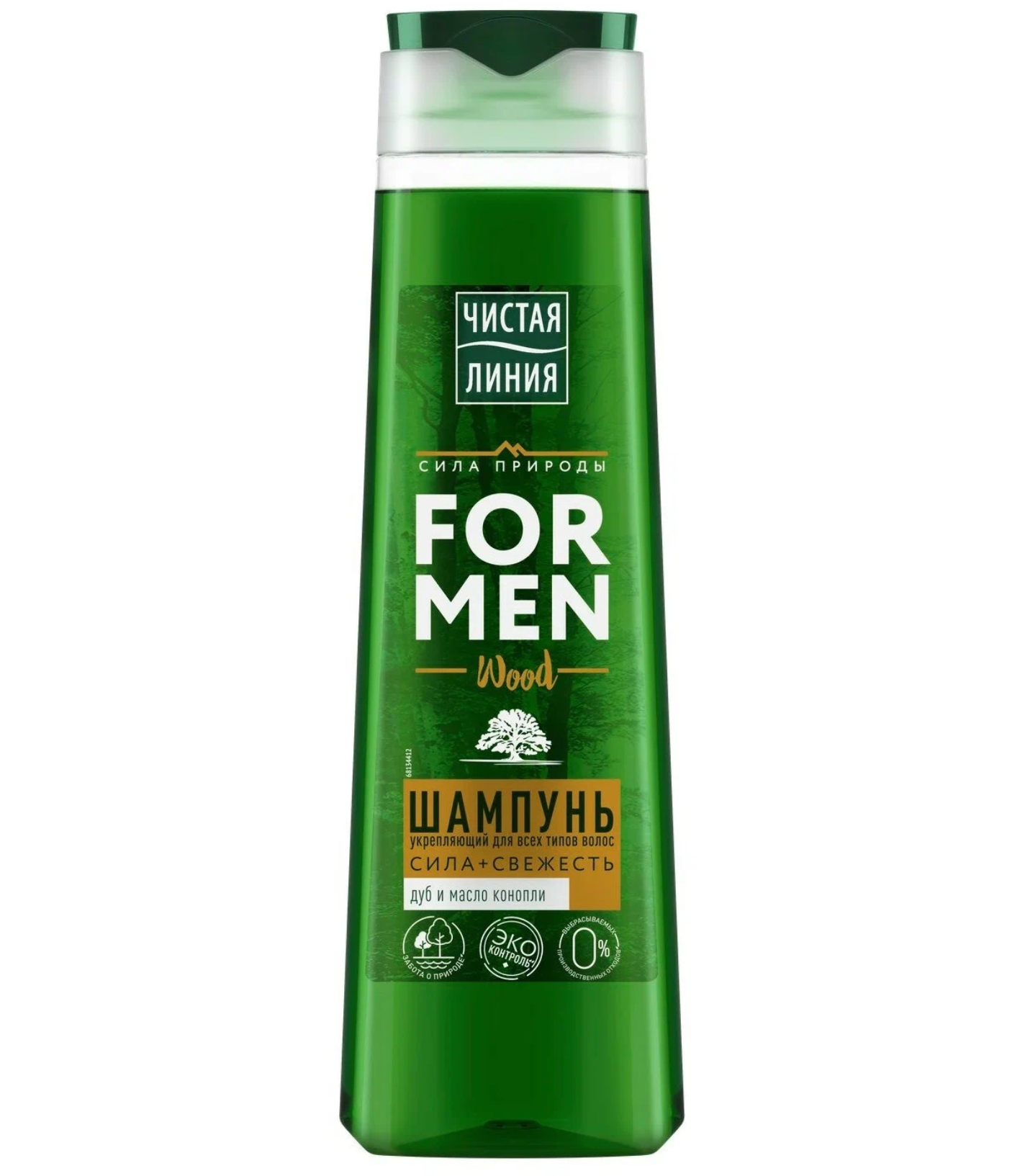 Шампунь Чистая Линия For Men укрепляющий Wood Сила и Свежесть для всех типов волос Дуб и масло конопли 400 мл