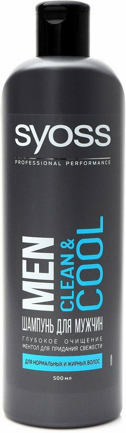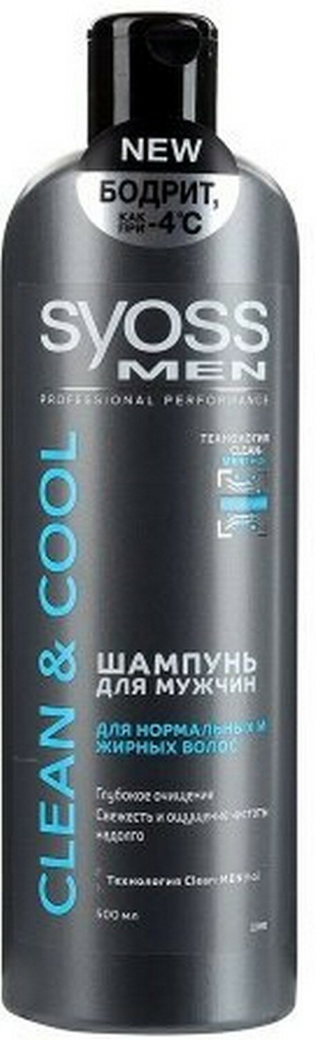 Syoss Шампунь мужской Clean & Cool, для нормальных и жирных волос, глубокое очищение, 450 мл