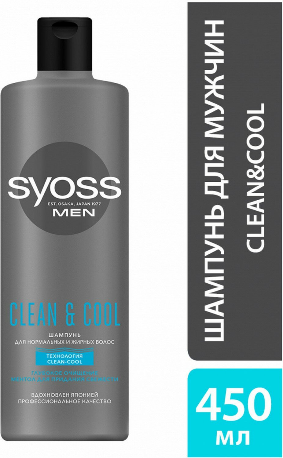 Шампунь, Syoss Men, Clean&Cool, глубокое очищение, для нормальных и жирных волос, 450 мл