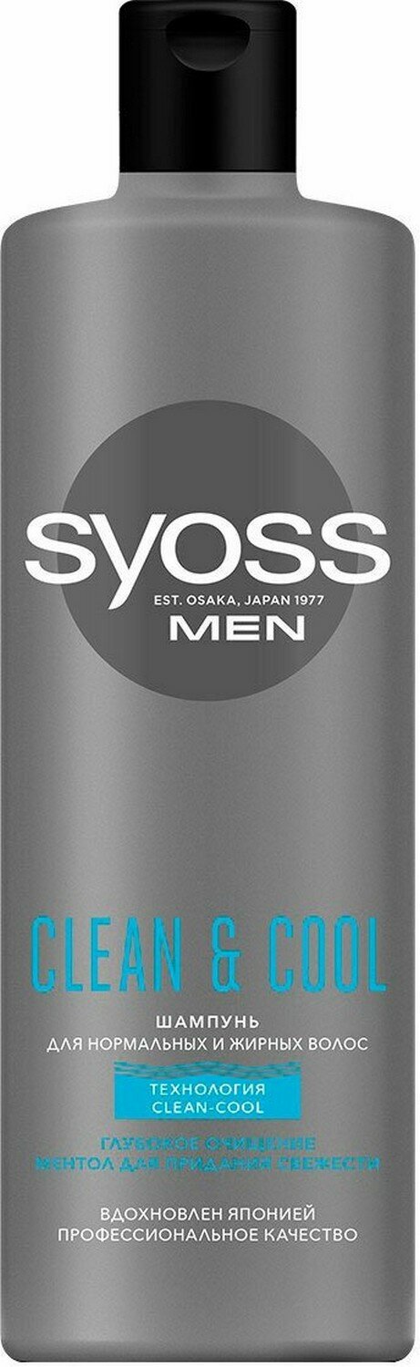 Syoss Шампунь Men Clean & Cool для нормальных и жирных волос, 450 мл