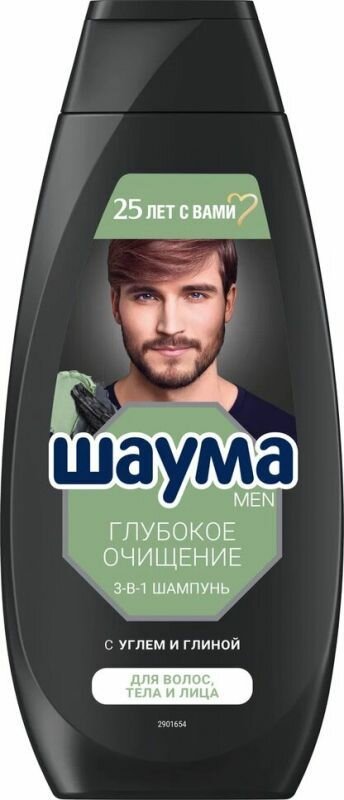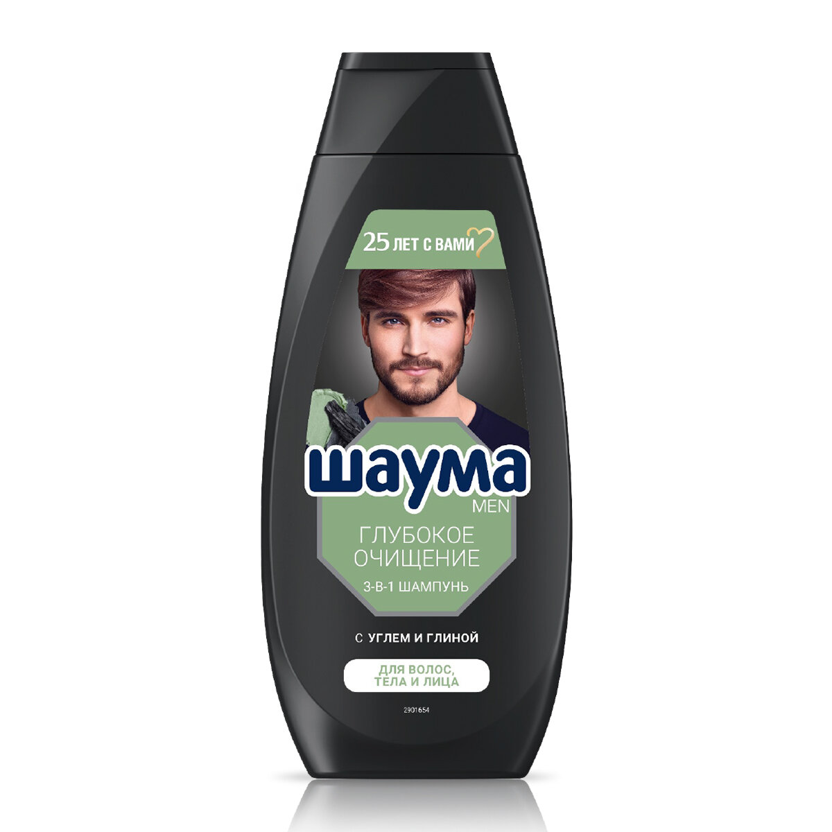 Шаума Men Шампунь для волос, тела и лица мужской Глубокое Очищение 3-в-1, 360 мл