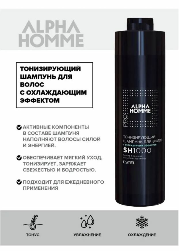 Мужской шампунь ALPHA HOMME PRO тонизирующий с охлаждающим эффектом, 1000 мл + Дозатор интересное: