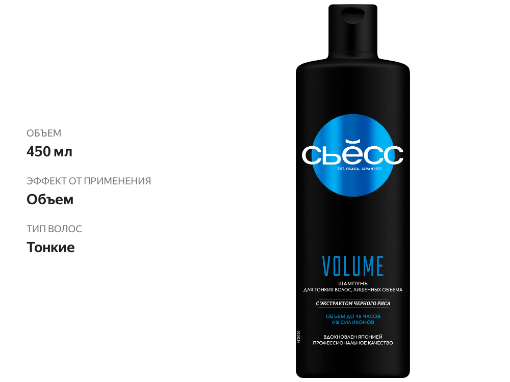 Сьёсс Шампунь для волос VOLUME, для тонких волос, лишенных объёма, воздушный объём без утяжеления, 450 мл - 6 шт