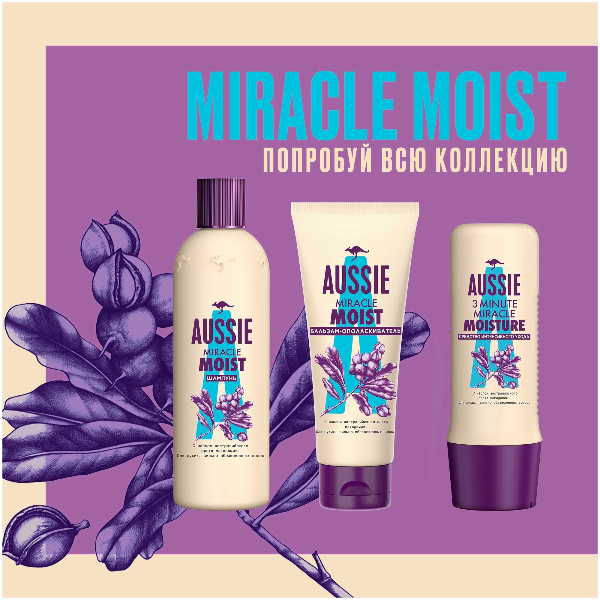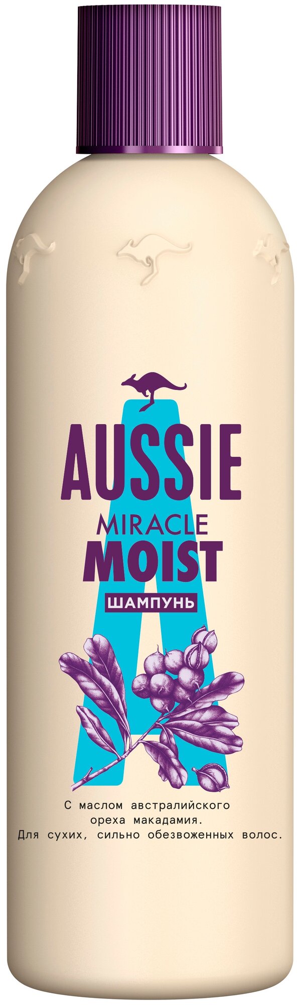 AUSSIE Шампунь Miracle Moist с маслом ореха макадамия для сухих и поврежденных волос / Осси / 300 мл