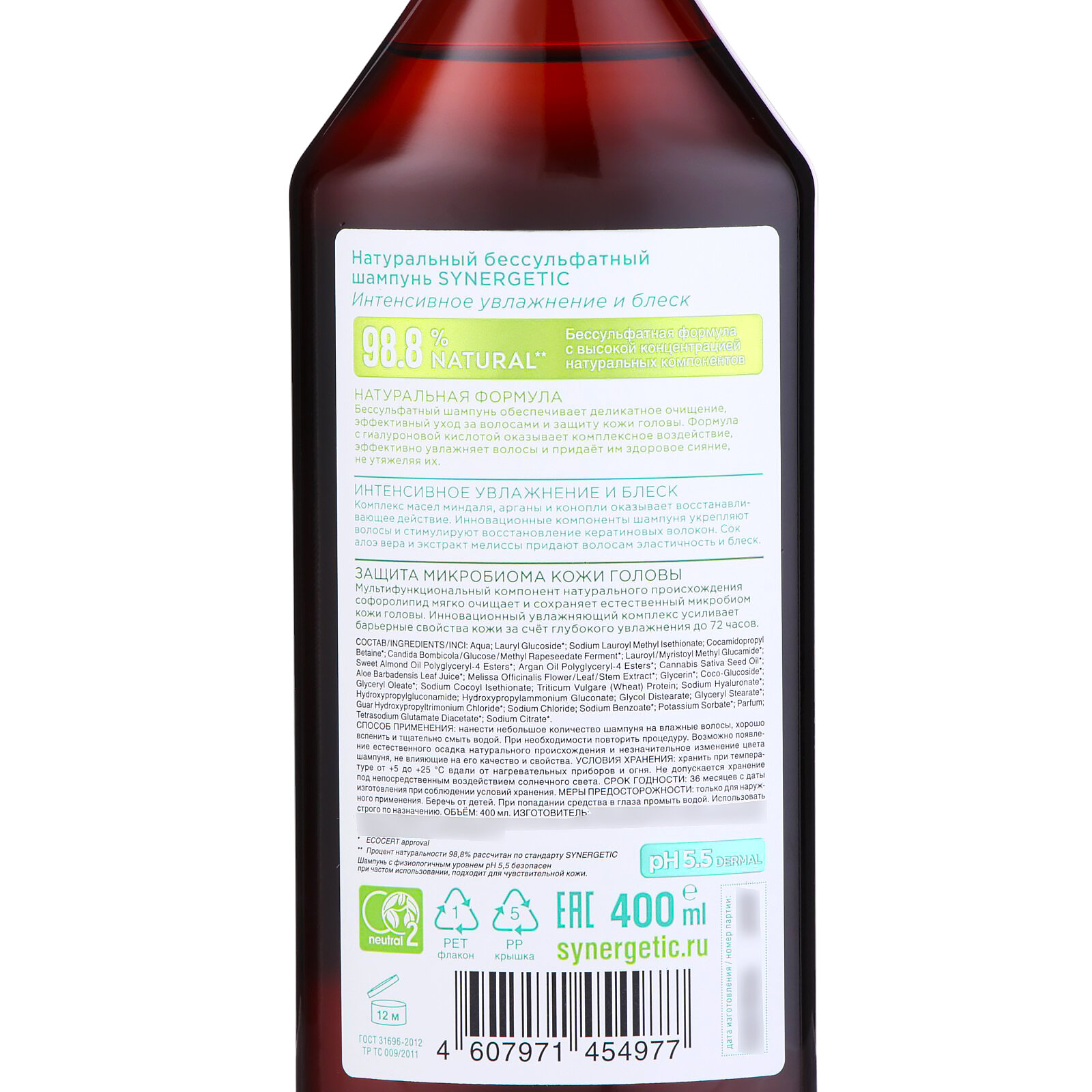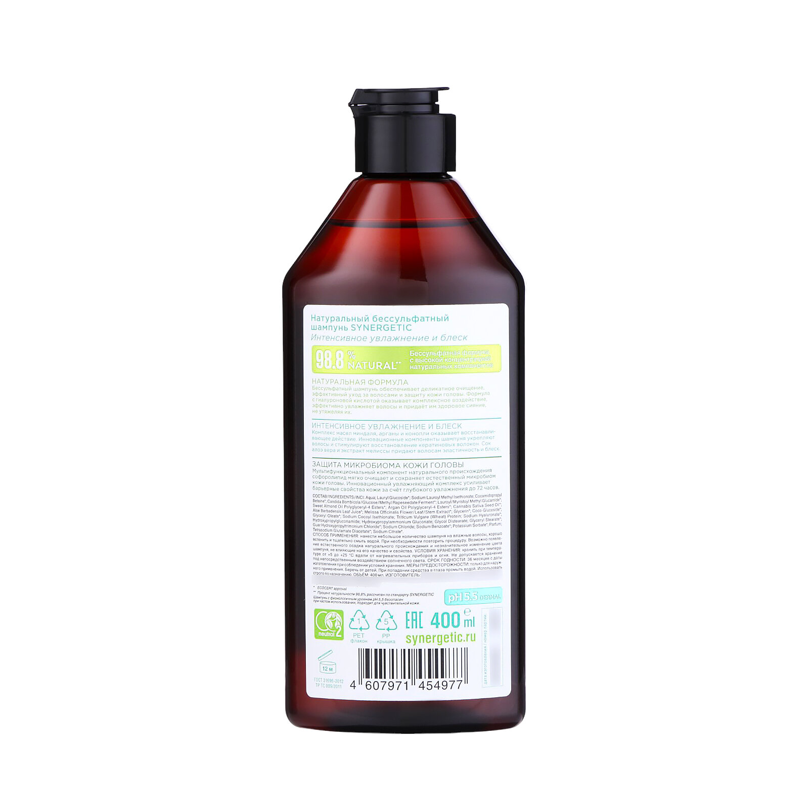 Натуральный бессульфатный шампунь SYNERGETIC Интенсивное увлажнение и блеск 400 мл