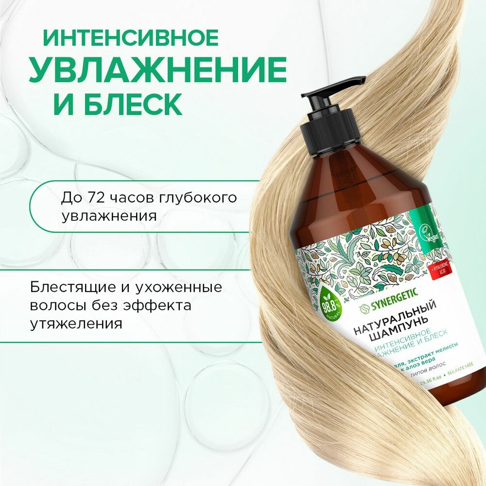Бессульфатный шампунь Synergetic Интенсивное увлажнение и блеск, 400 мл