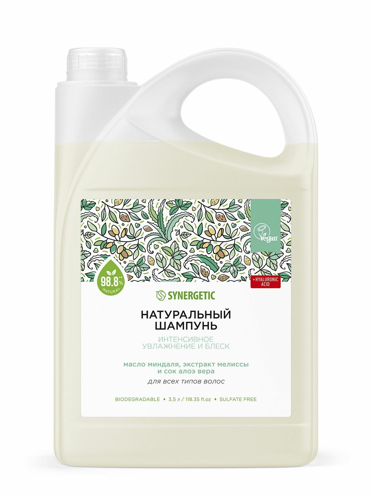 Купить Натуральный бессульфатный шампунь SYNERGETIC Интенсивное увлажнение и блеск, 3,5 л