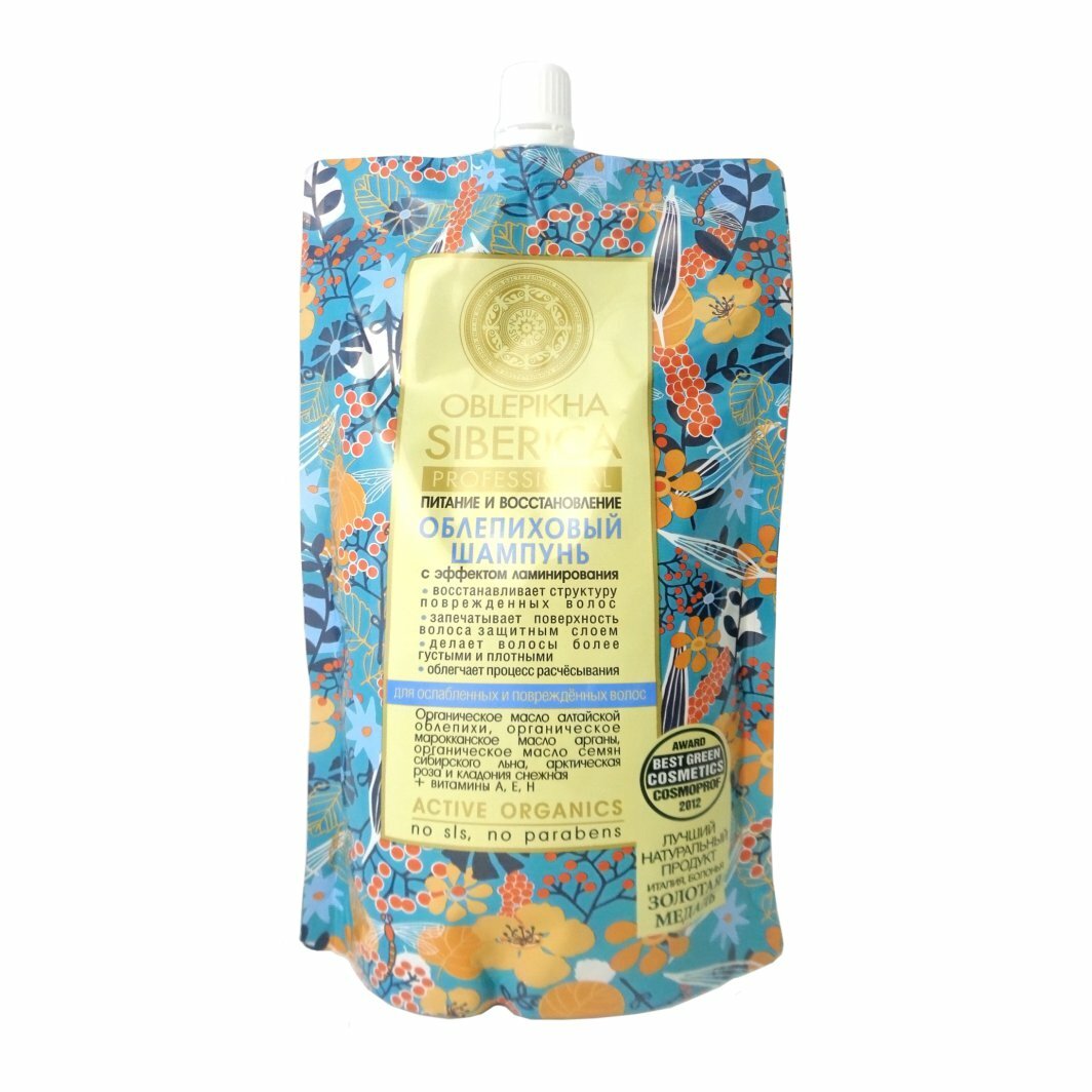 Natura Siberica Oblepikha Профессиональный облепиховый шампунь для поврежденных волос восстанавливающий питательный с эффектом ламинирования 500 мл