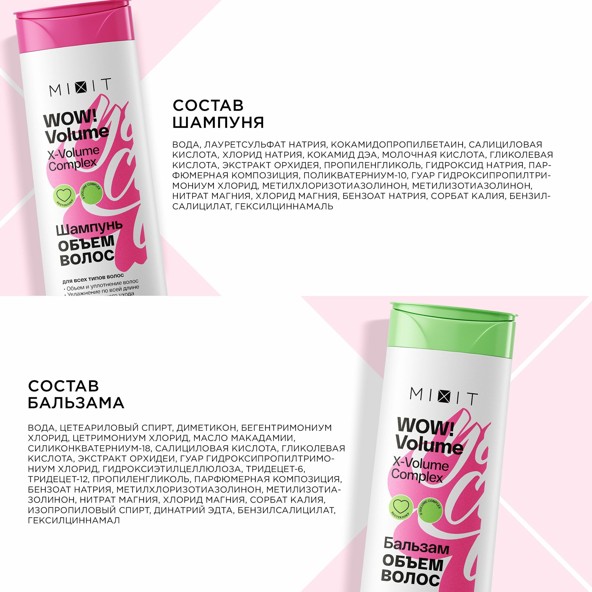 MIXIT Шампунь для объема волос и бальзам кондиционер ополаскиватель набор. Профессиональный увлажняющий и восстанавливающий уход Wow Volume интересное: