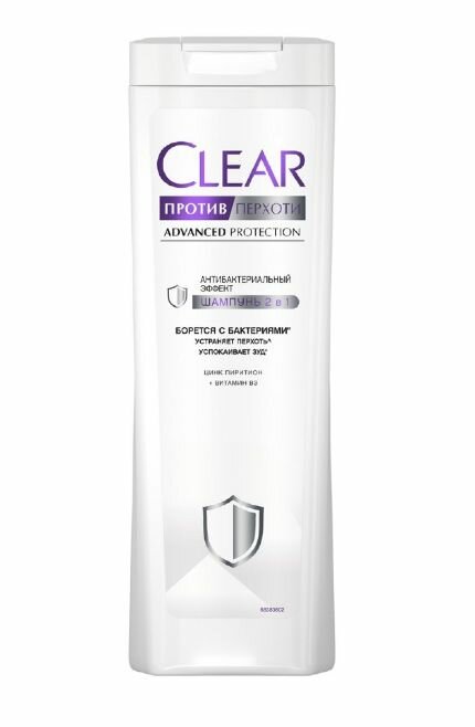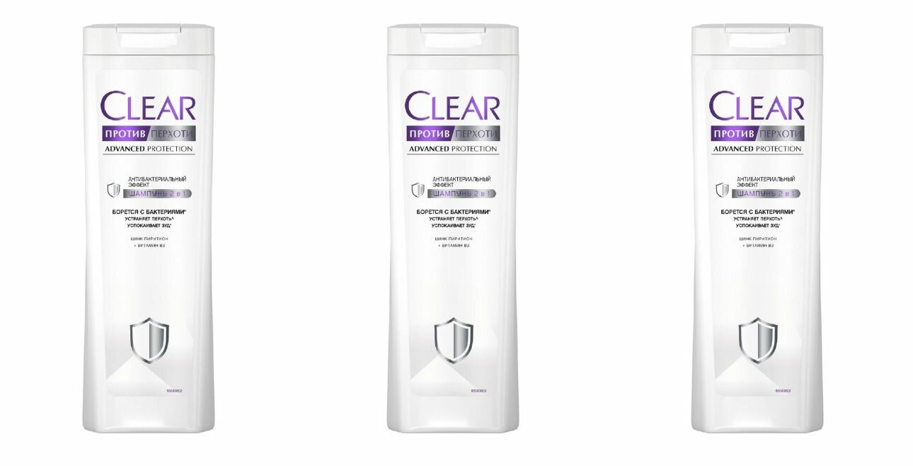 Купить Clear Шампунь и бальзам против перхоти 2 в 1 Антибактериальный эффект, 380 мл , 3 шт.