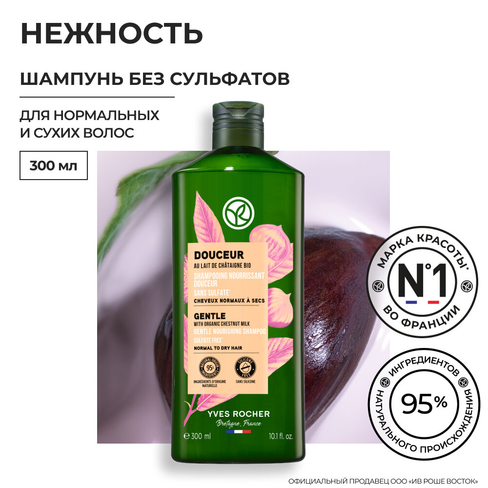 Купить Yves Rocher Шампунь нежность с Молочком Каштана БИО - Без Cульфатов - Для нормальных и сухих волос, 300мл
