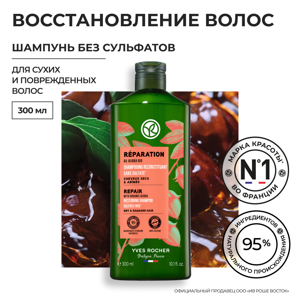 Купить Yves Rocher Шампунь восстановление с Жожоба БИО - Без Сульфатов - Для сухих и поврежденных волос, 300мл