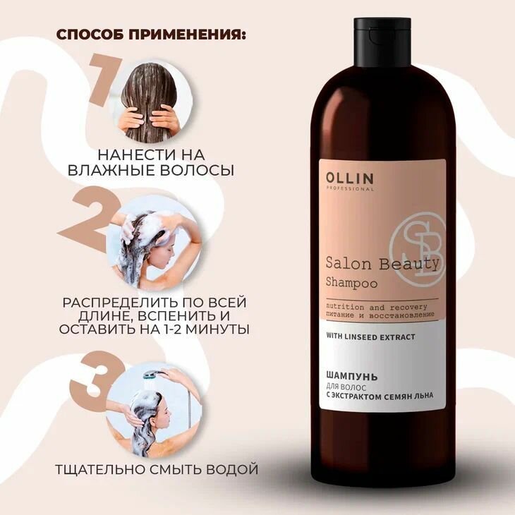Шампунь SALON BEAUTY для ухода за волосами OLLIN PROFESSIONAL с экстрактом семян льна 1000 мл - 2 шт