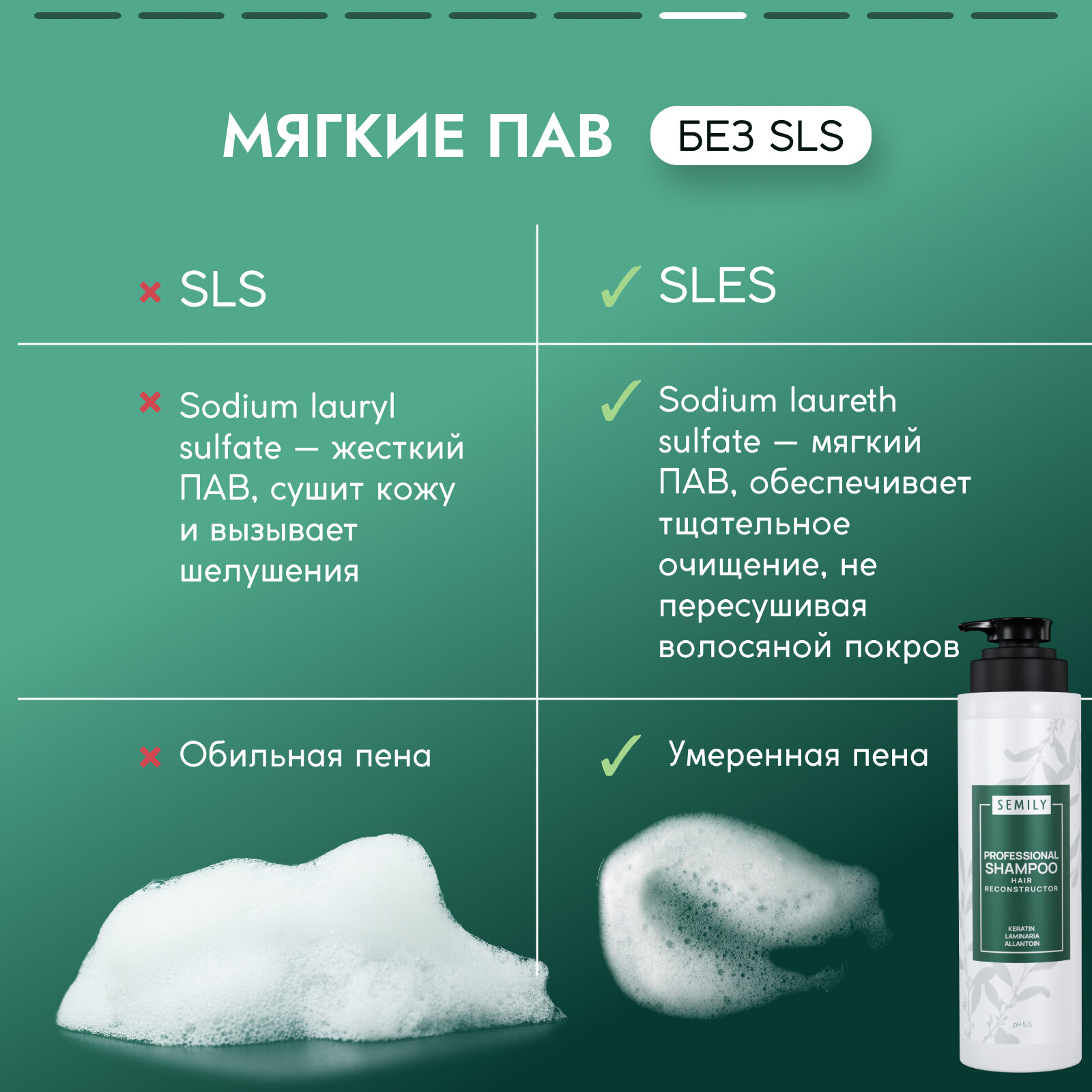 Купить Шампунь для волос с кератином Semily бессульфатный 1шт, 400мл