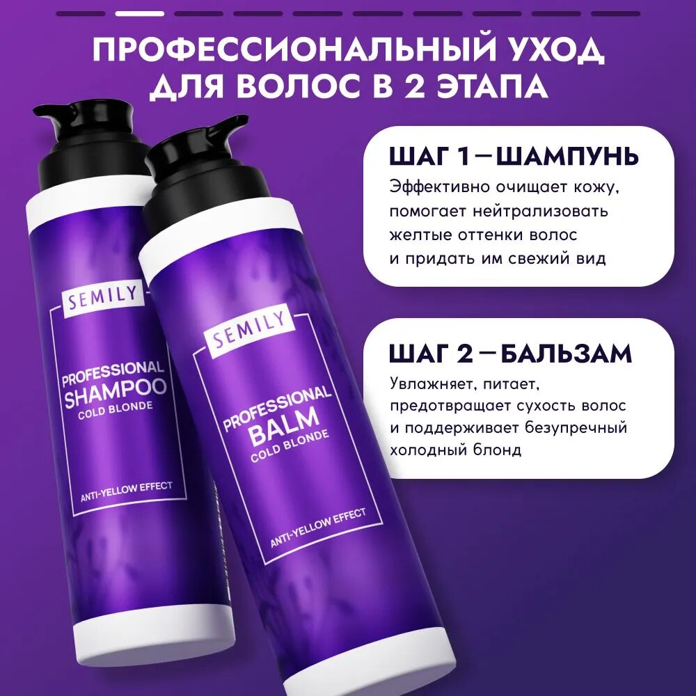 Набор для окрашенных волос, оттеночный шампунь и бальзам для волос против желтизны Semily, 400+400мл