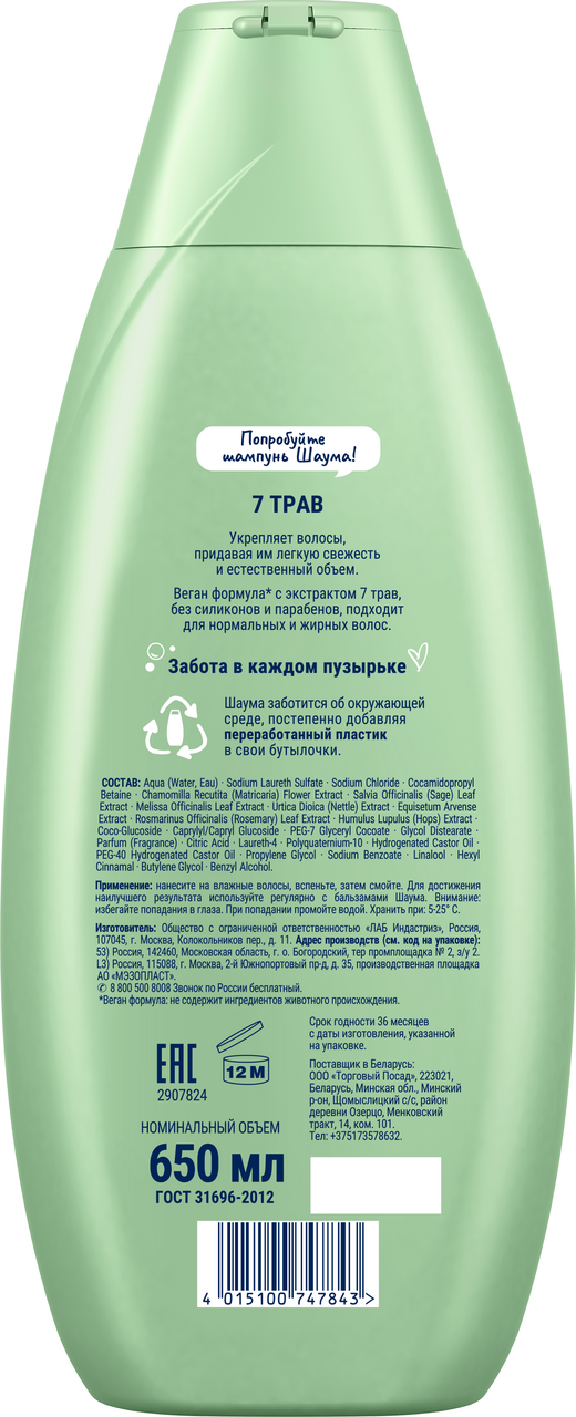 Шаума Шампунь для нормальных и жирных волос женский 7 Трав, 650 мл