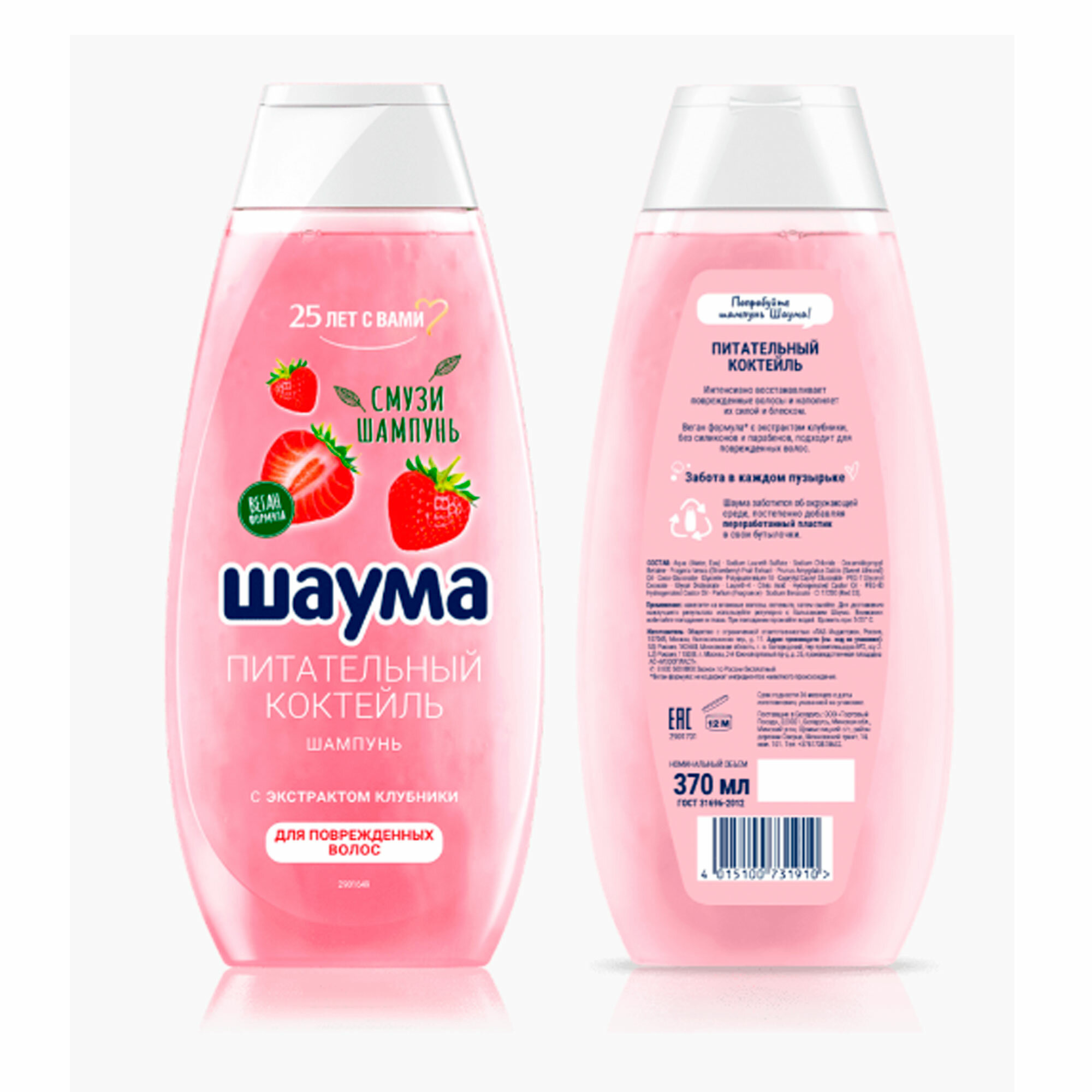 Шампунь питательный коктейль с экстрактoм клубники 370мл