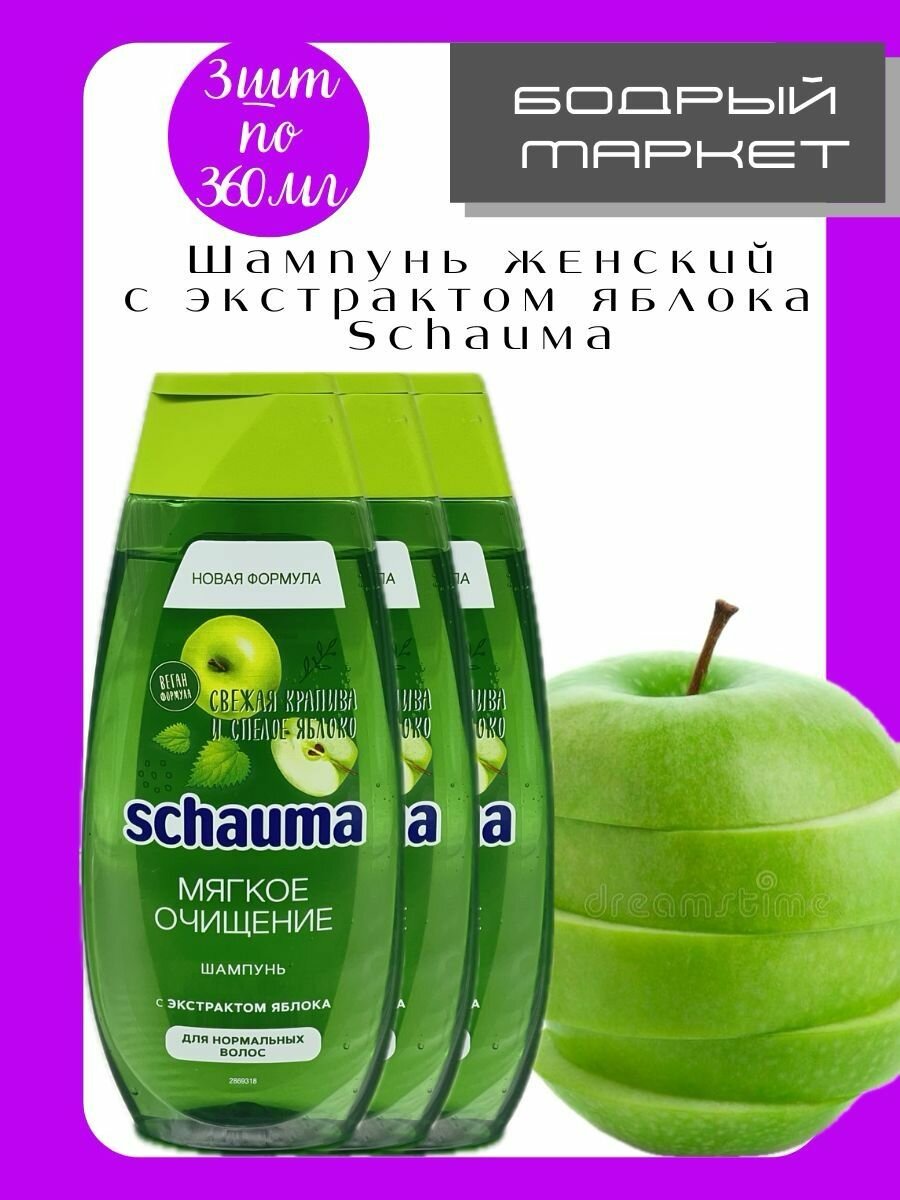 Купить Шампунь для волос Schauma Мягкое очищение с экстрактом яблока, 370 мл, 3 шт