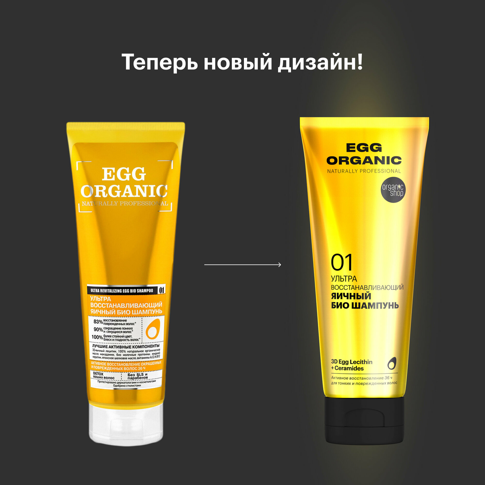Шампунь Organic Shop "Био-шампунь Egg Organic Naturally Professional", яичный, ультра восстанавливающий, 250 мл