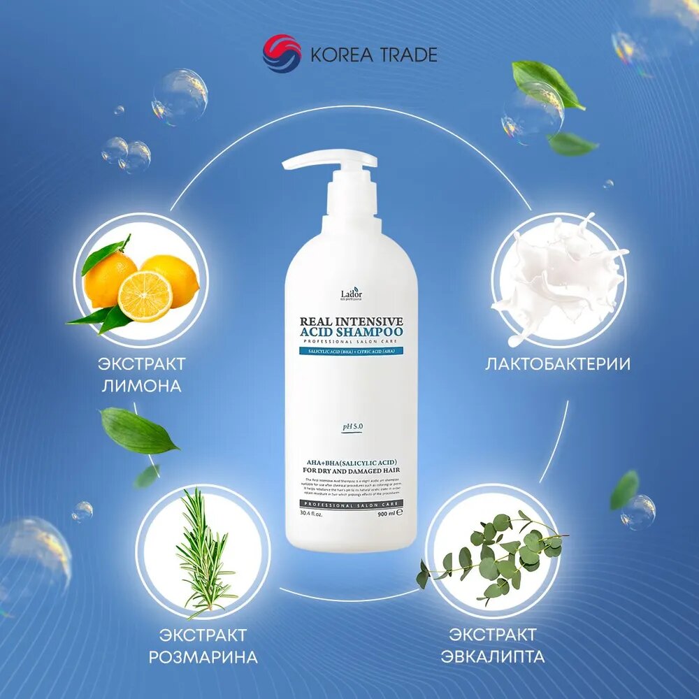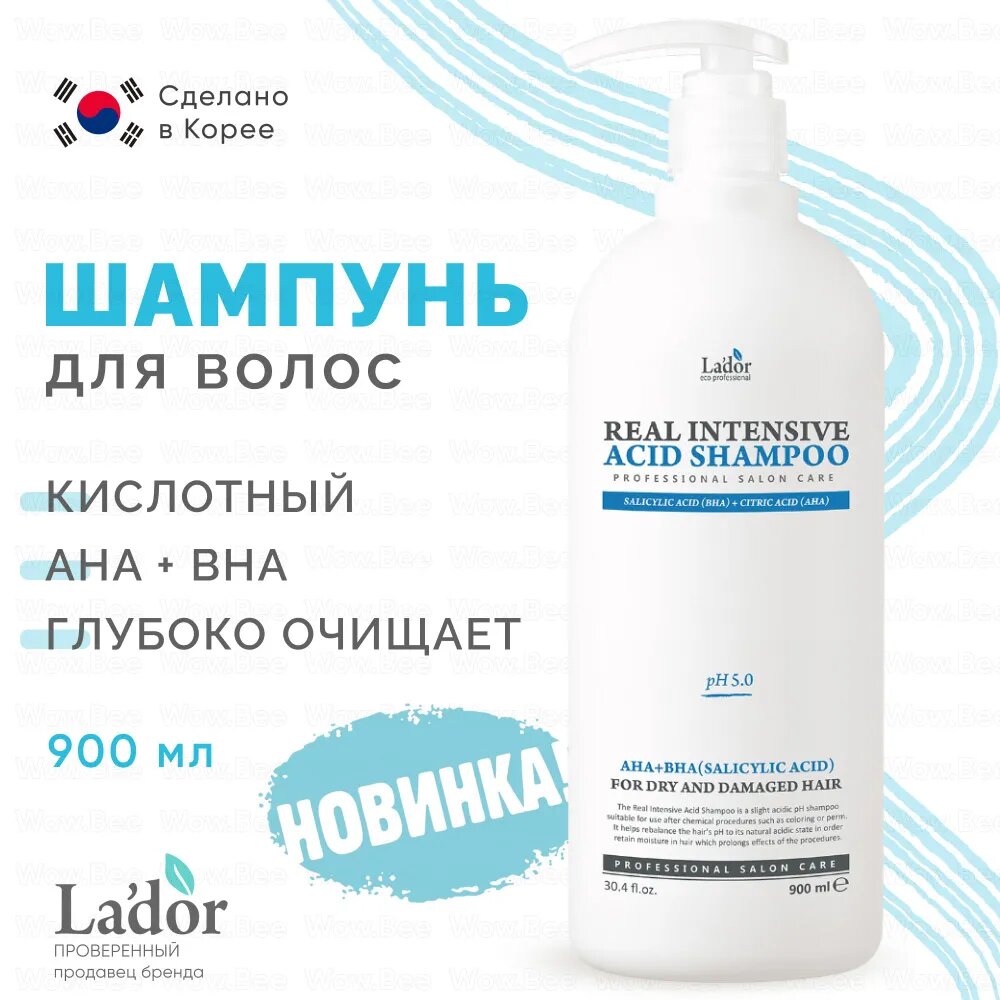 Шампунь для сухих и поврежденных волос Lador Real Intensive Acid Shampoo, 900 мл / Корейский шампунь