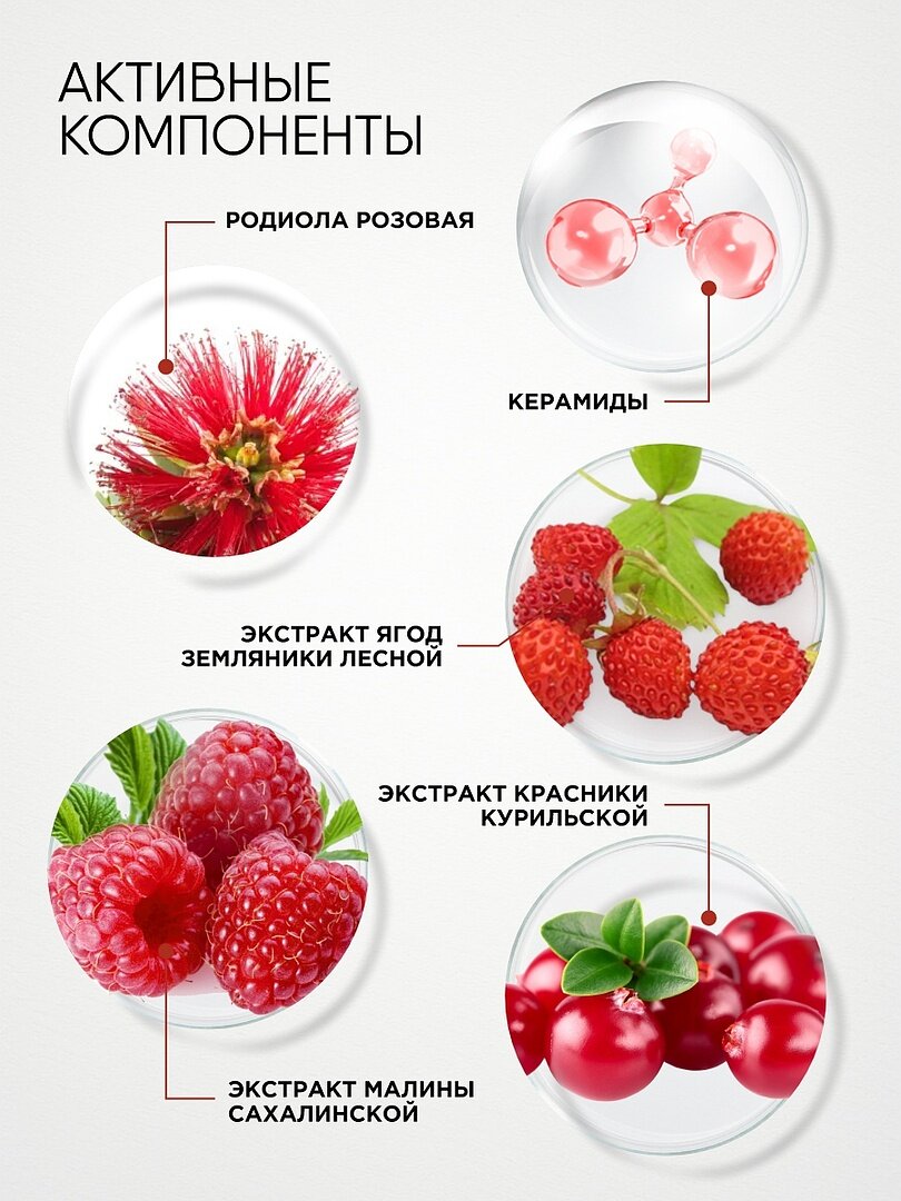 | Масла и экстракты | масло герани / экстракт малины / экстракт родиолы розовой |