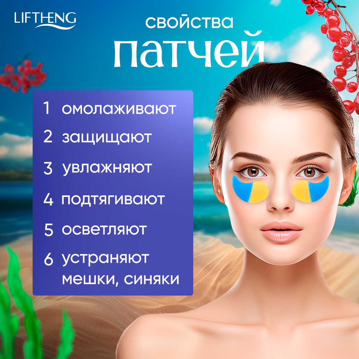 Патчи для глаз гидрогелевые 60 шт LIFTHENG х2 / Патчи для глаз / Жидкие пачи от морщин вокруг глаз, от синяков под глазами / Патч косметика для век