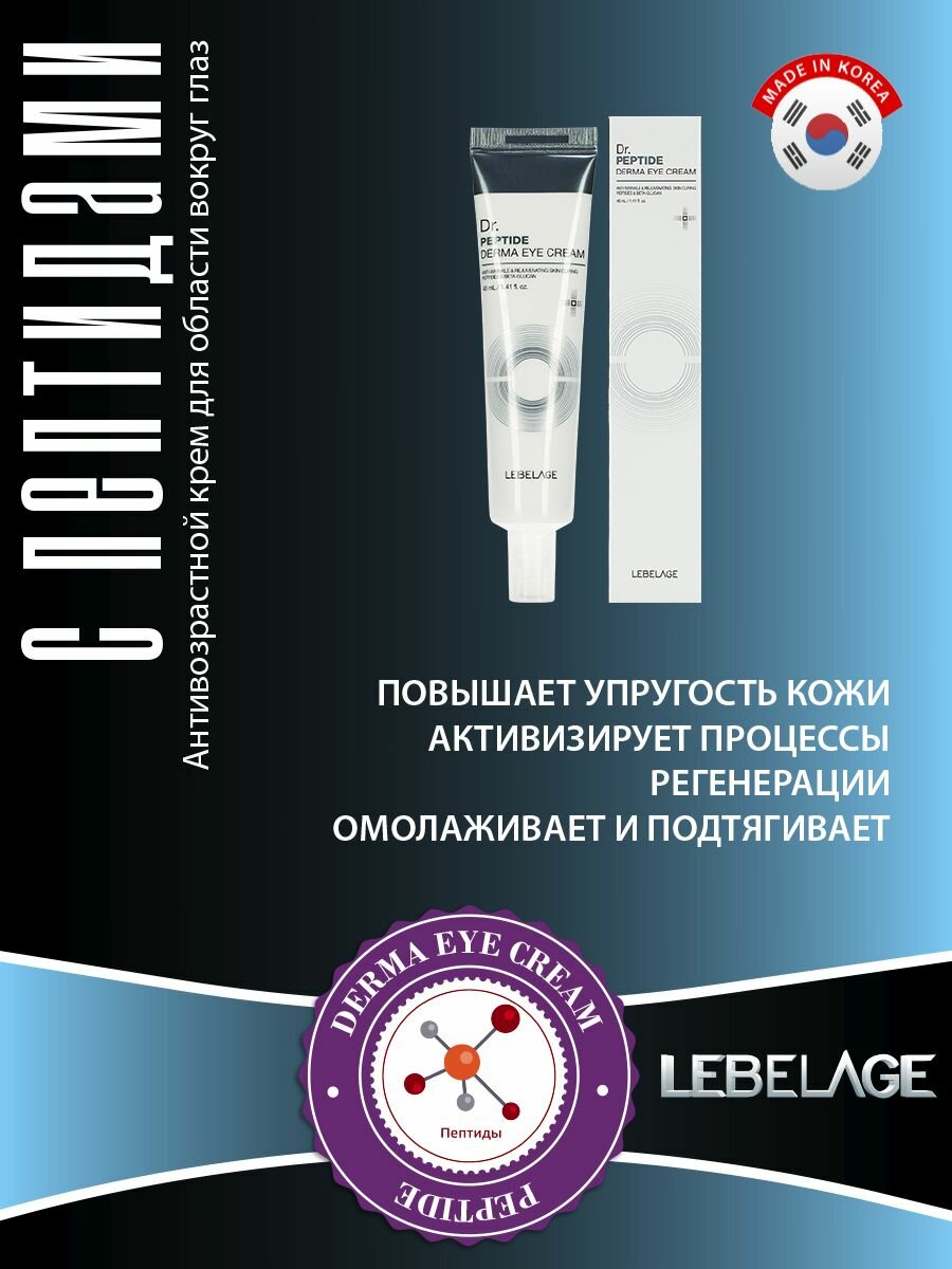 Купить LEBELAGE Антивозрастной крем для области вокруг глаз, для ухода за кожей век с пептидами, корейская косметика. 40мл