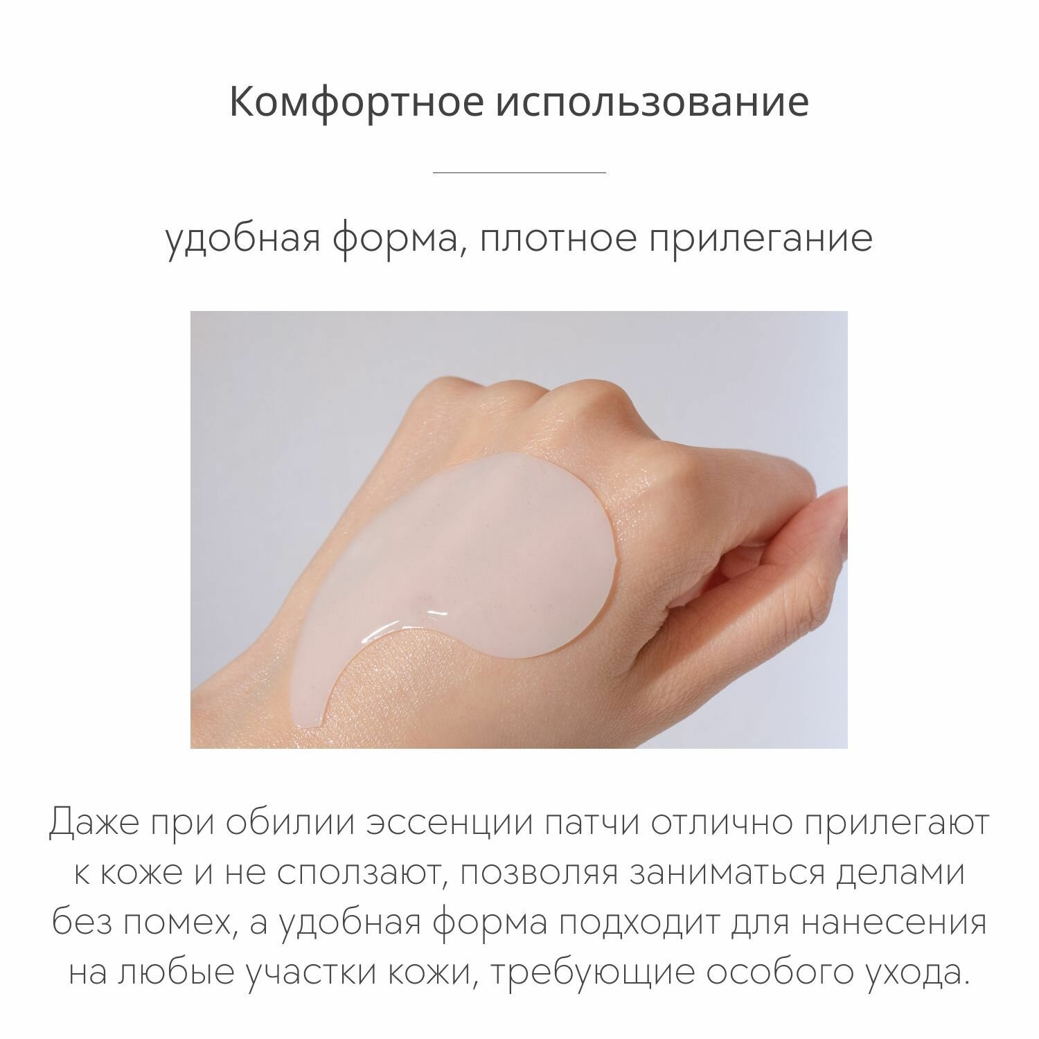 | Способ применения | Извлеките патчи с помощью лопатки, нанесите на очищенную зону вокруг глаз и оставьте на 30-40 минут. Аккуратно снимите патчи и распределите остатки средства подушечками пальцев. Не использовать на раздраженные и поврежденные участки кожи. |