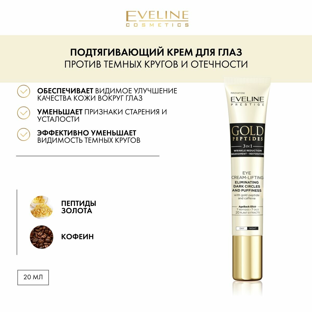 EVELINE GOLD PEPTIDES Подтягивающий крем для глаз против темных кругов и отечности день/ночь с пептидами золота и кофеином 20мл интересное: