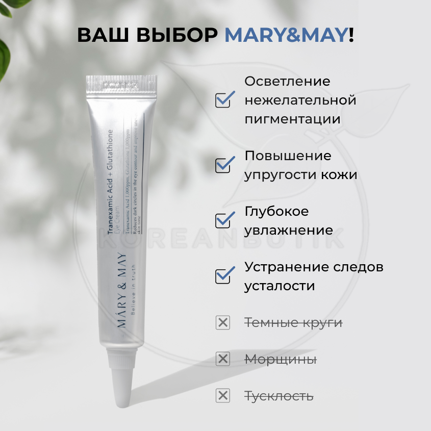 Крем для кожи вокруг глаз осветляющий | Mary&May Tranexamic Acid+ Glutathion Eye Cream 12мл интересное: