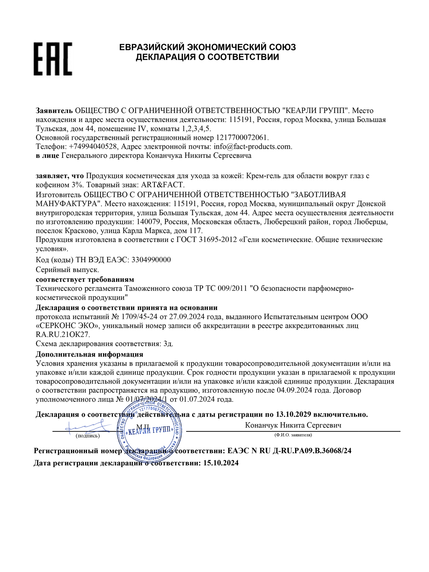 ART&FACT. / Крем-гель для области вокруг глаз с кофеином 3%, 30 мл интересное: