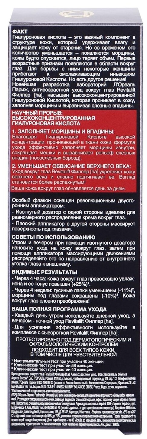 L'Oreal Paris Крем Revitalift филлер [ha] вокруг глаз, 15 мл
