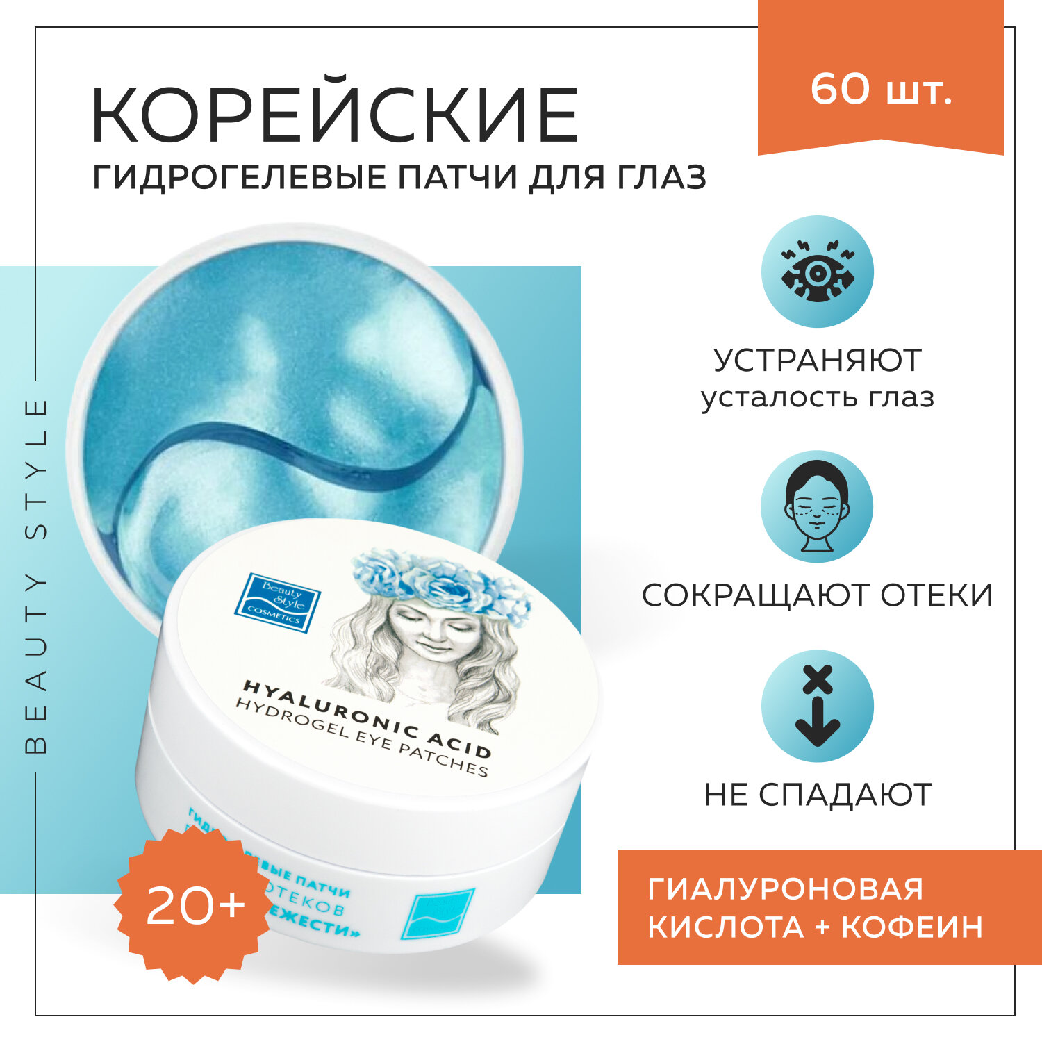 Beauty Style, Корейские гидрогелевые патчи для глаз против отеков с гиалуроновой кислотой и кофеином, 60 шт интересное: